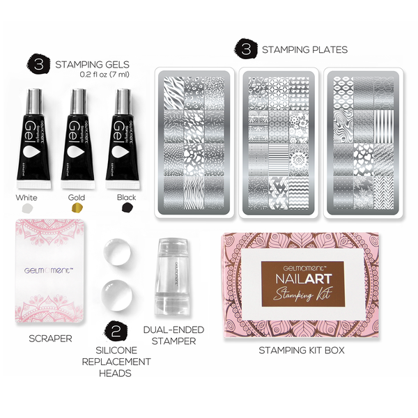 Our stamping kits are an excellent way to get initiated with this type of nail art. They include everything you need to try your hand at stamping, from plates to accessories, all sold together at a great value: